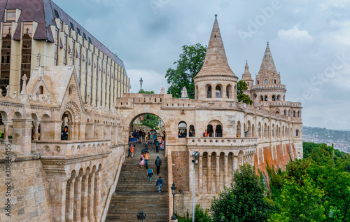 Towers and steps on Buda hill in Budapest. Fishing bastion