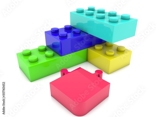 Toy bricks with puzzle piece in the foreground