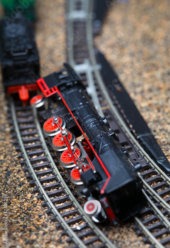 Toy railroad train crash