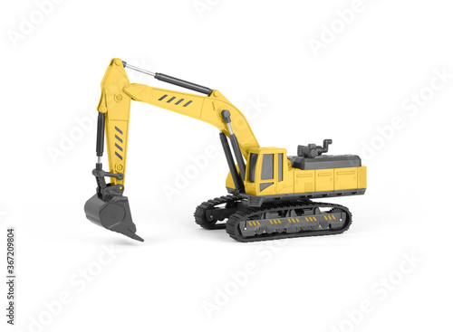 toy yellow excavator isolated on white background