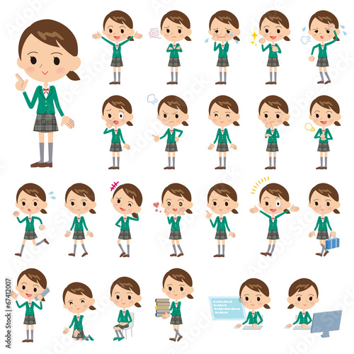 ブレザー女子学生全身動作/同じシリーズはtoyotoyoポートフォリオ内から「親しみ デフォルメ」と検索してください