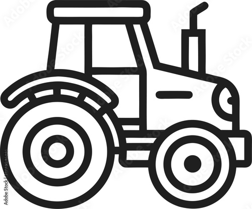Tractor vector line art icon black and white , white background