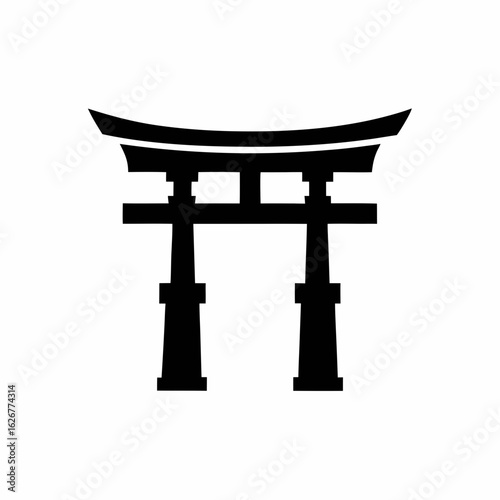 Traditional Japanese torii gate vector silhouette icon.