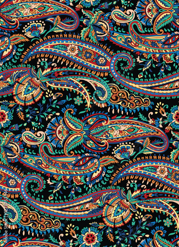 traditional paisley seamless pattern on black background