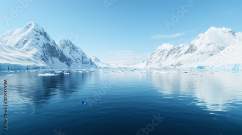 Tranquil Arctic Landscape with Snowy Mountains and Icebergs
