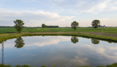 Tranquil Farm Landscape Reflective Pond with Trees