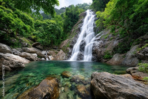 Tranquil Waterfall Cascading into Emerald Pool