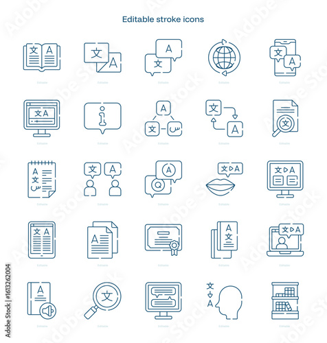 Translation stroke icon. Translation line icon set. editable stroke icon pack