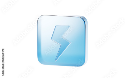 Transparent blue glass icon, 3d rendering.