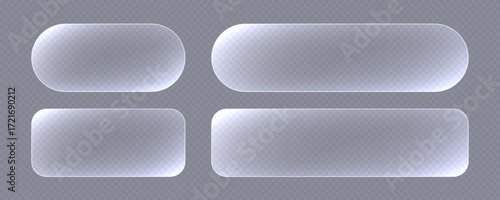 Transparent glass buttons, white clear banners. Futuristic interface templates for web design. Vector illustration.