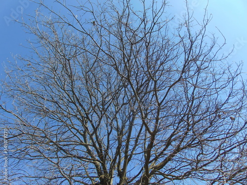 tree branches against blue sky