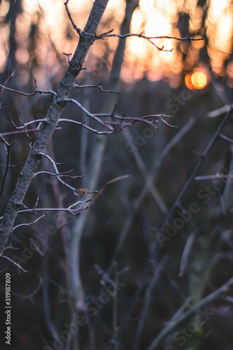 tree branches without leaves on sunset background