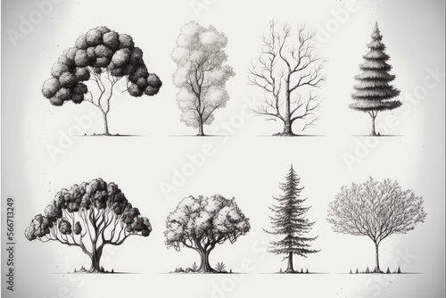 Tree line drawing illustration white background