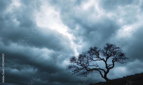 tree silhouette against rainy clouds, Generative AI