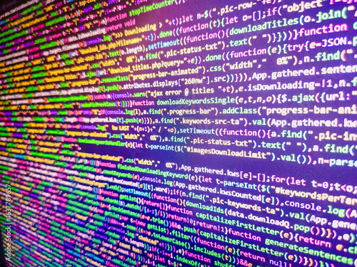 Trendy design. Programming code abstract screen of software developer. Web Design Business Concept. Notebook closeup photo. Program code - angle view Modern application Coded data on monitor