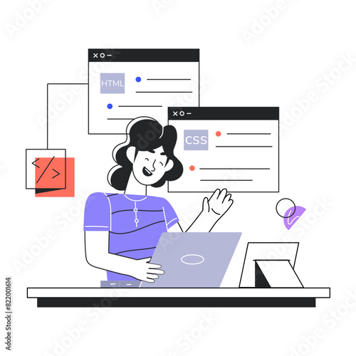 Trendy linear mini illustration of a web developer