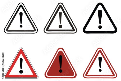 Triangle Warning Sign Vector Set – Exclamation Mark Caution and Hazard Symbols