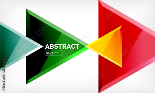 Triangles repetiton geometric abstract background, multicolored glossy triangular shapes, hi-tech poster cover design or web presentation template with copy space
