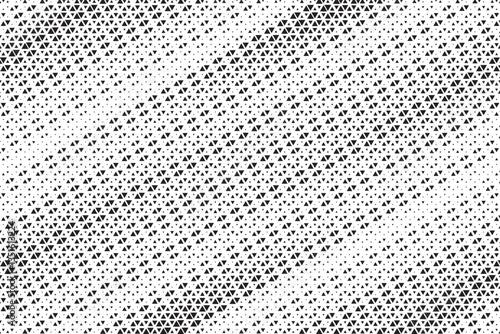 Triangular halftone texture retro wave vector. Geometric technology abstract diagonal dotted background. Half tone triangles retro comic pattern. Minimal 80s style dynamic tech structure wallpaper.