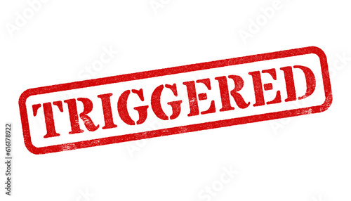 Triggered red rubber stamp isolated on transparent background with distressed texture effect