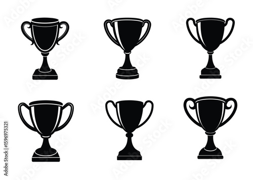 Trophy cup silhouette vector Set
