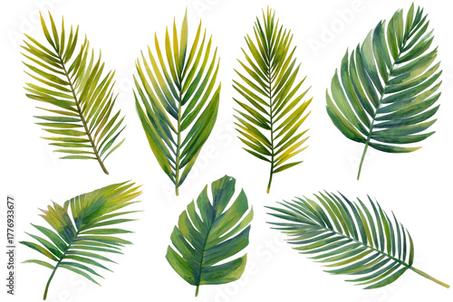 Tropical leaves in various shades of green and yellow