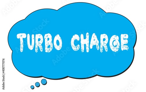 TURBO CHARGE text written on a blue thought bubble.