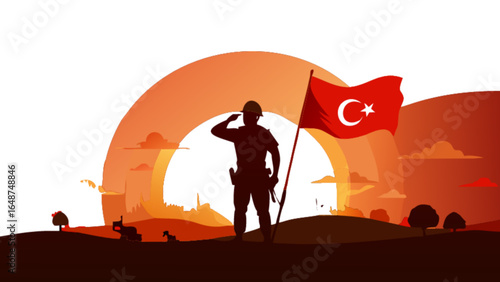 Turkish soldier silhouette saluting with flag for zafer bayrami victory day celebration symbol design