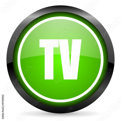 tv green glossy icon on white background