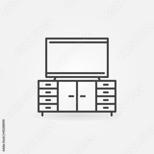TV on Cupboard linear icon. TV Table vector symbol