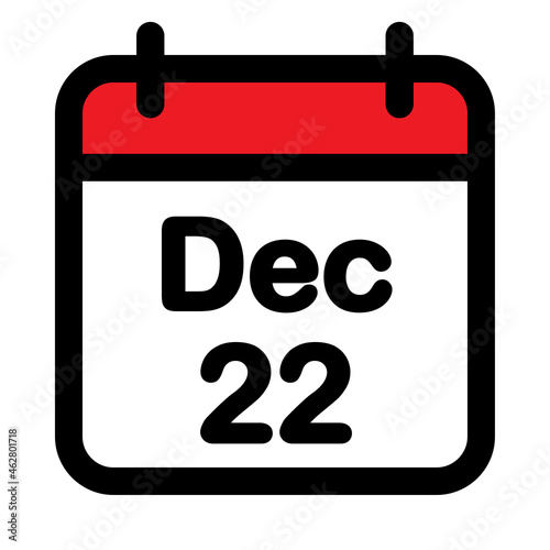 Twenty second December calendar icon
