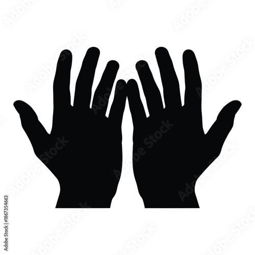 Two black hands facing each other palms open creating a symbolic image