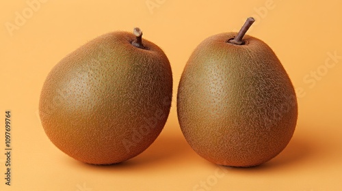 Two brown pears on an orange background.