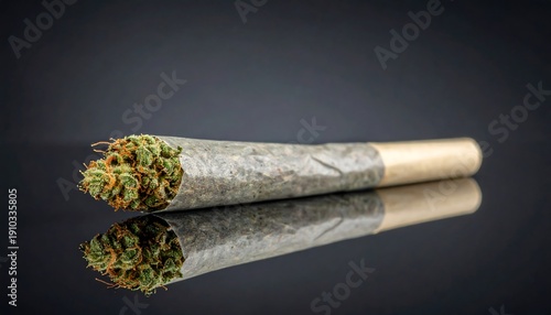 Two cannabis joints on reflective surface