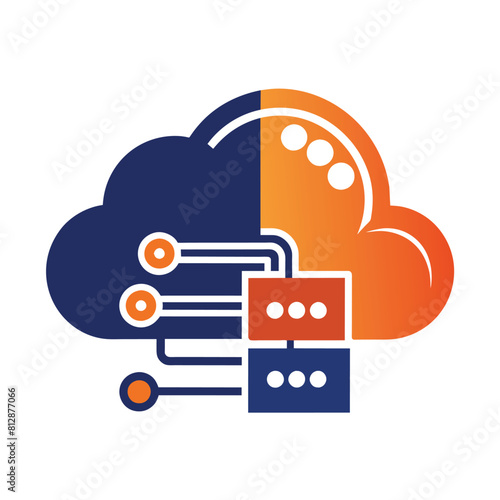 Two dice are placed on top of a cloud, symbolizing a unique cloud computing system, Abstract representation of a cloud computing system, minimalist logo