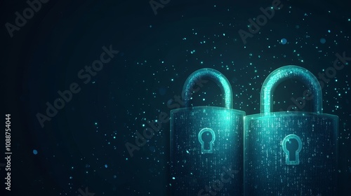 Two digital locks surrounded by floating binary code, symbolizing cybersecurity and data protection.