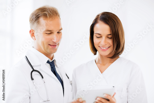 two doctors looking at tablet pc