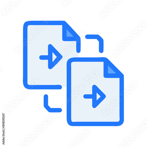 Two document icon illustration signifying file transfer, migration, or data replication