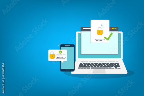 authentication, security, authorisation, vector, duet, 2, step, verification, verify, password, concept, login, genuine, authentic, computer, background, certificate, identification, truth, online, identity, id, illustration, smart, smartphone, laptop, phone, web, safe, screen, service, permission, approved, proof, cyber, space, firewall, privacy, technology, validation, factor, user, multi, mobile, request, account, safety