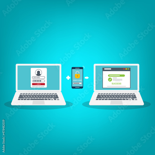 laptop, smartphone, mobile, authentication, security, authorisation, vector, duet, 2, step, verification, verify, password, concept, login, genuine, authentic, computer, background, certificate, identification, truth, online, identity, id, illustration, smart, phone, web, safe, screen, service, permission, approved, proof, cyber, space, firewall, privacy, technology, validation, factor, user, multi, request, account, safety
