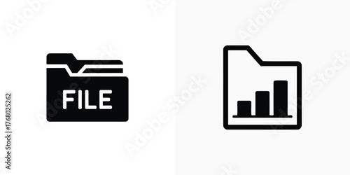 Two Folders Graph Icons in Black Isolated on White Background