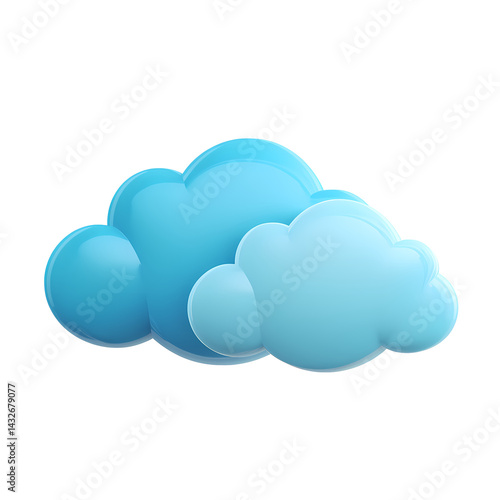 Two Glossy Blue Clouds 3D Render on Transparent Background for Design Elements