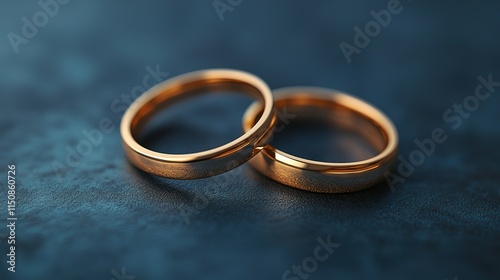 Two Gold Wedding Rings Resting On Dark Surface