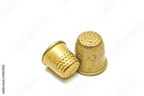 two golden metal thimbles