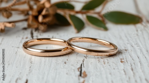 Two intertwined golden wedding rings resting on a rustic wooden surface, representing eternal love, commitment, and the beauty of personal relationships.