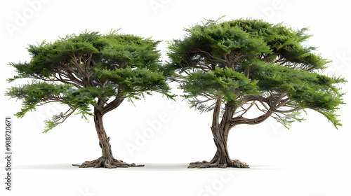Two Lush Green Trees Isolated on White Background