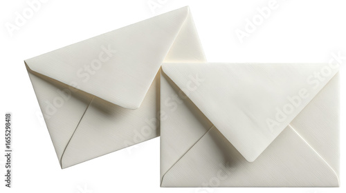 Two Off-White Textured Envelopes Pointy Flaps Slightly Overlapping.
