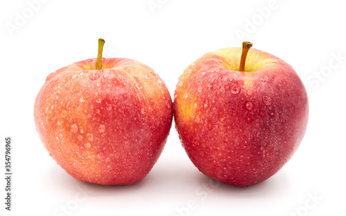 Two red apples isolated on white background .