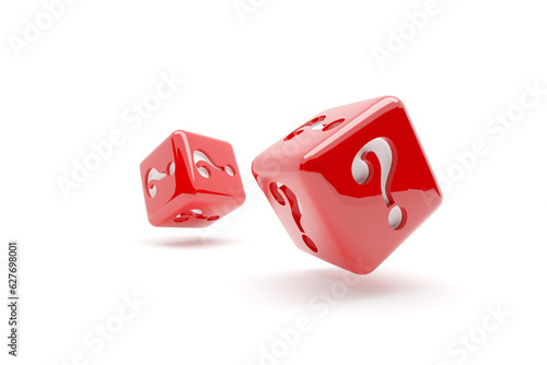 Two red dices with question marks on a white background, 3d rendering
