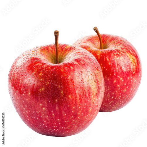 Two shiny, red apples with subtle speckles